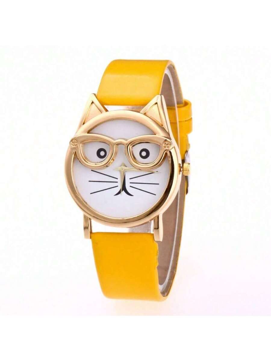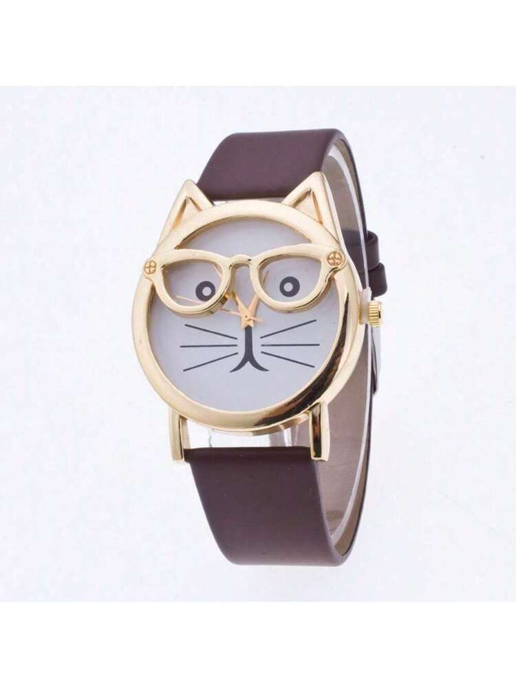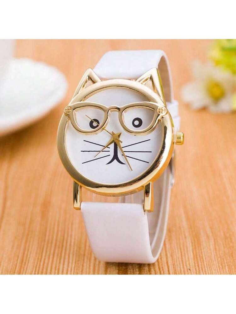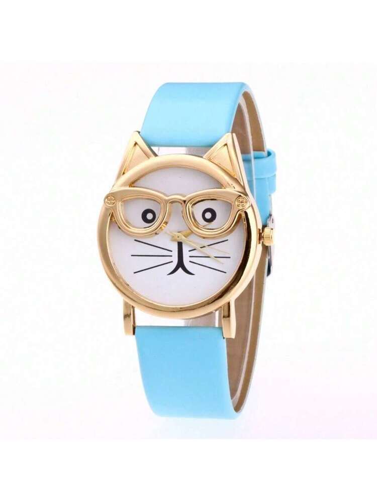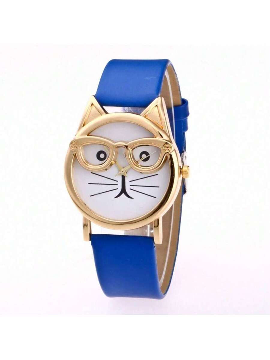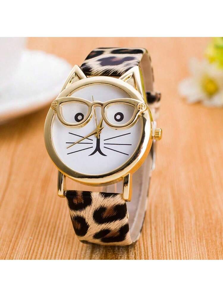 Cat Dial Gift Fashion With Glasses Strap Quartz Men's And Women's Watches (Large Dial)
