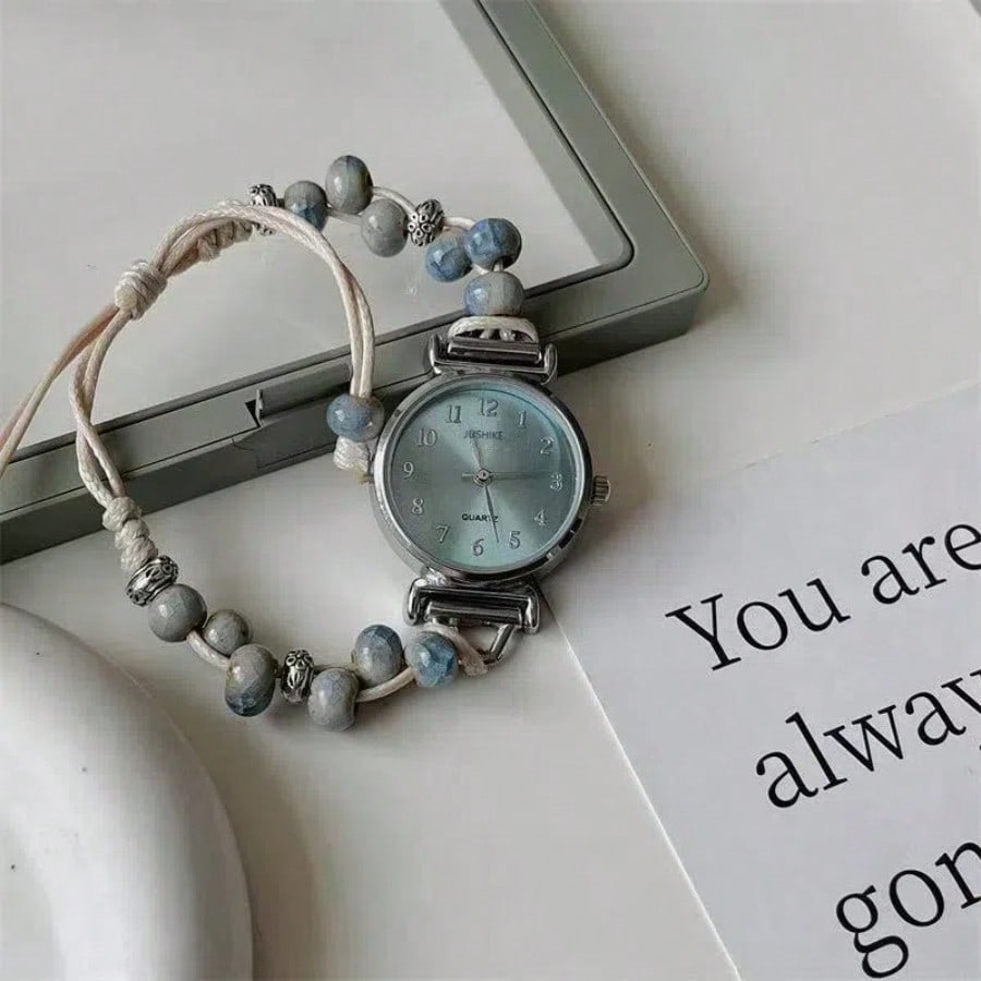 Women's Chinese-Style Beaded Quartz Watch – Ceramic Bracelet Design