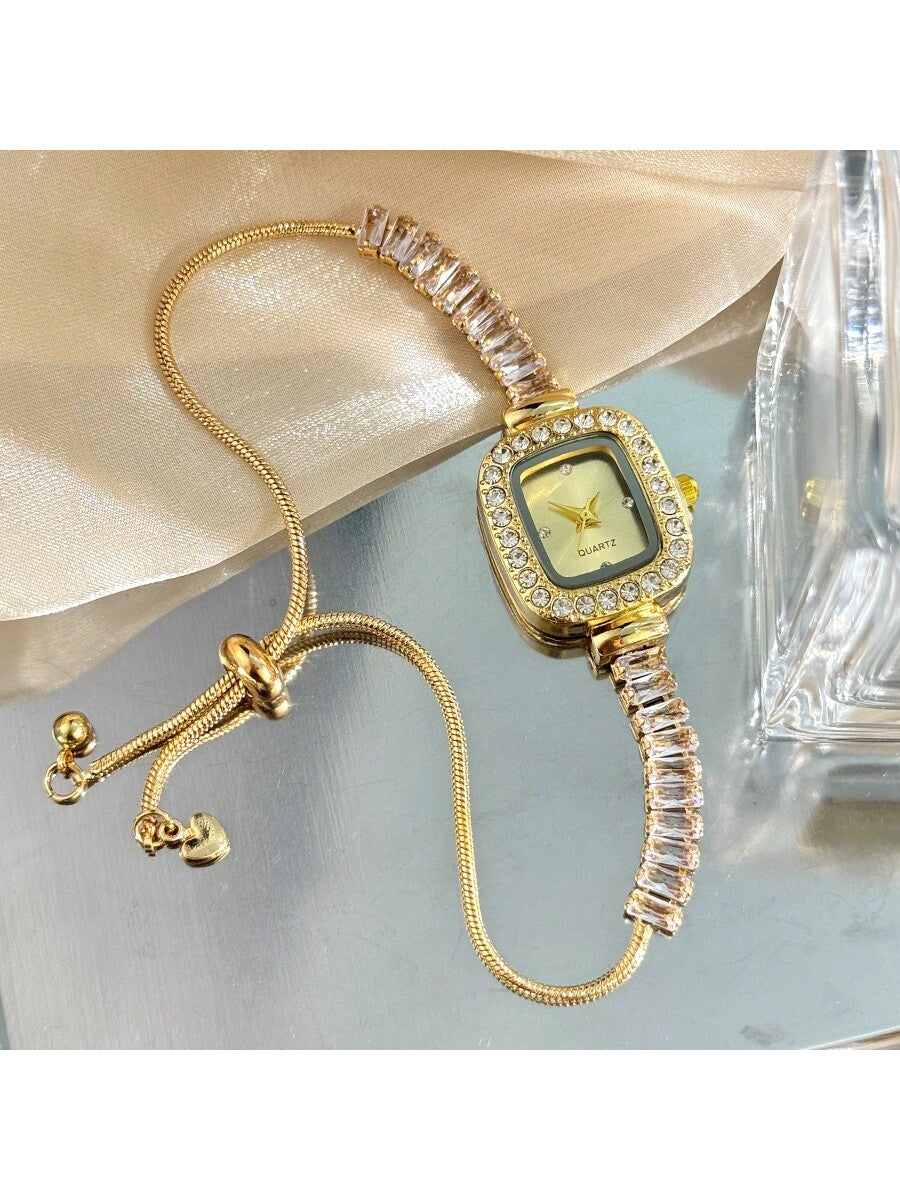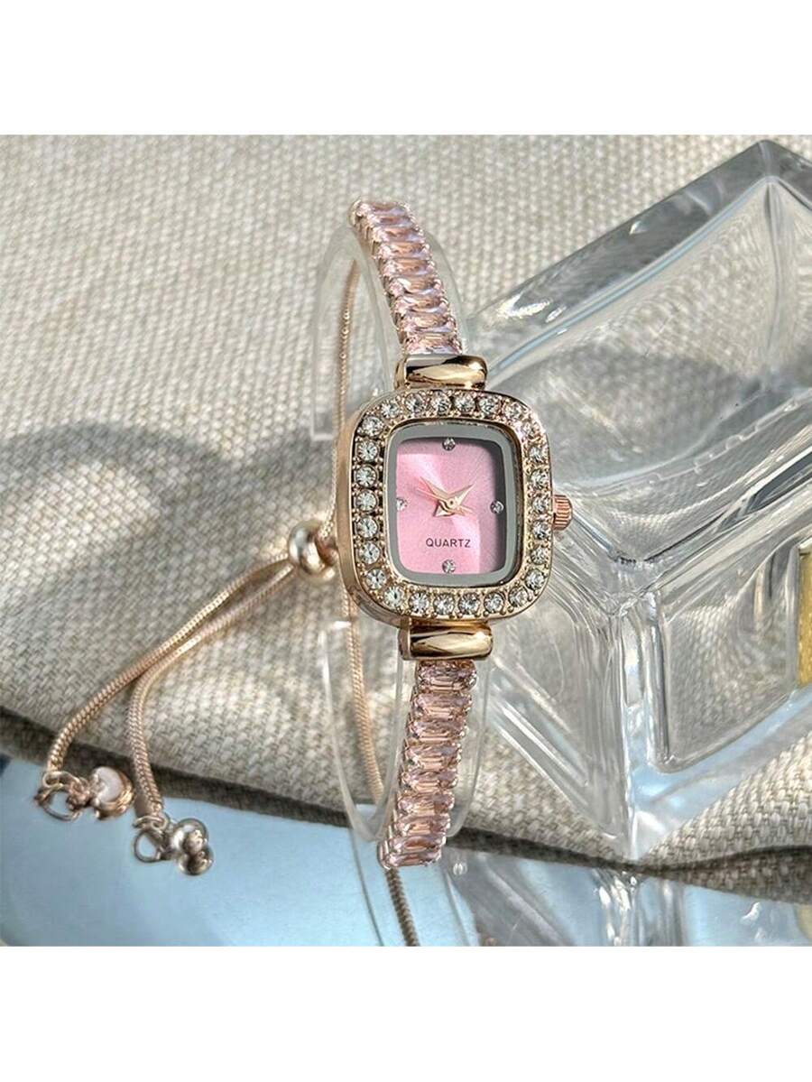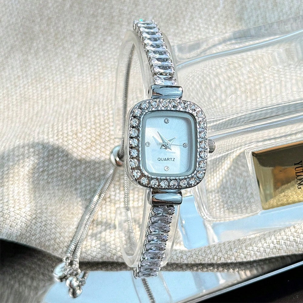 Bracelet Watch Women Adjustable Silver Tone Cubic Zirconia Rhinestone Alloy Case Elegant Quartz Minimalist Dial Gift for Daily Wear & Special Occasions 180+ Characters