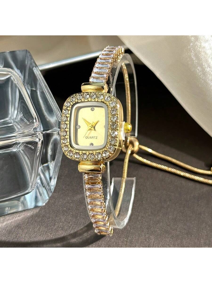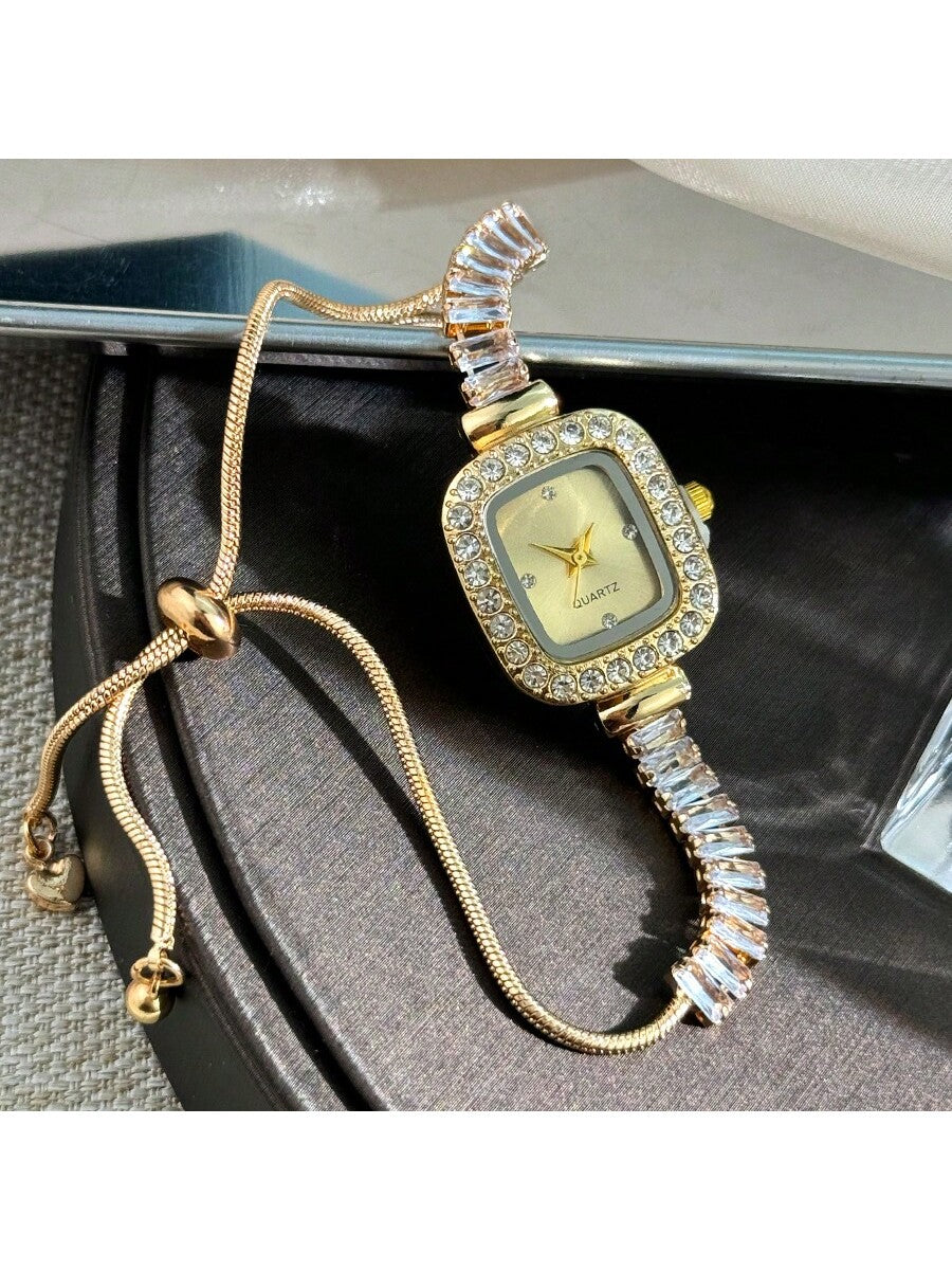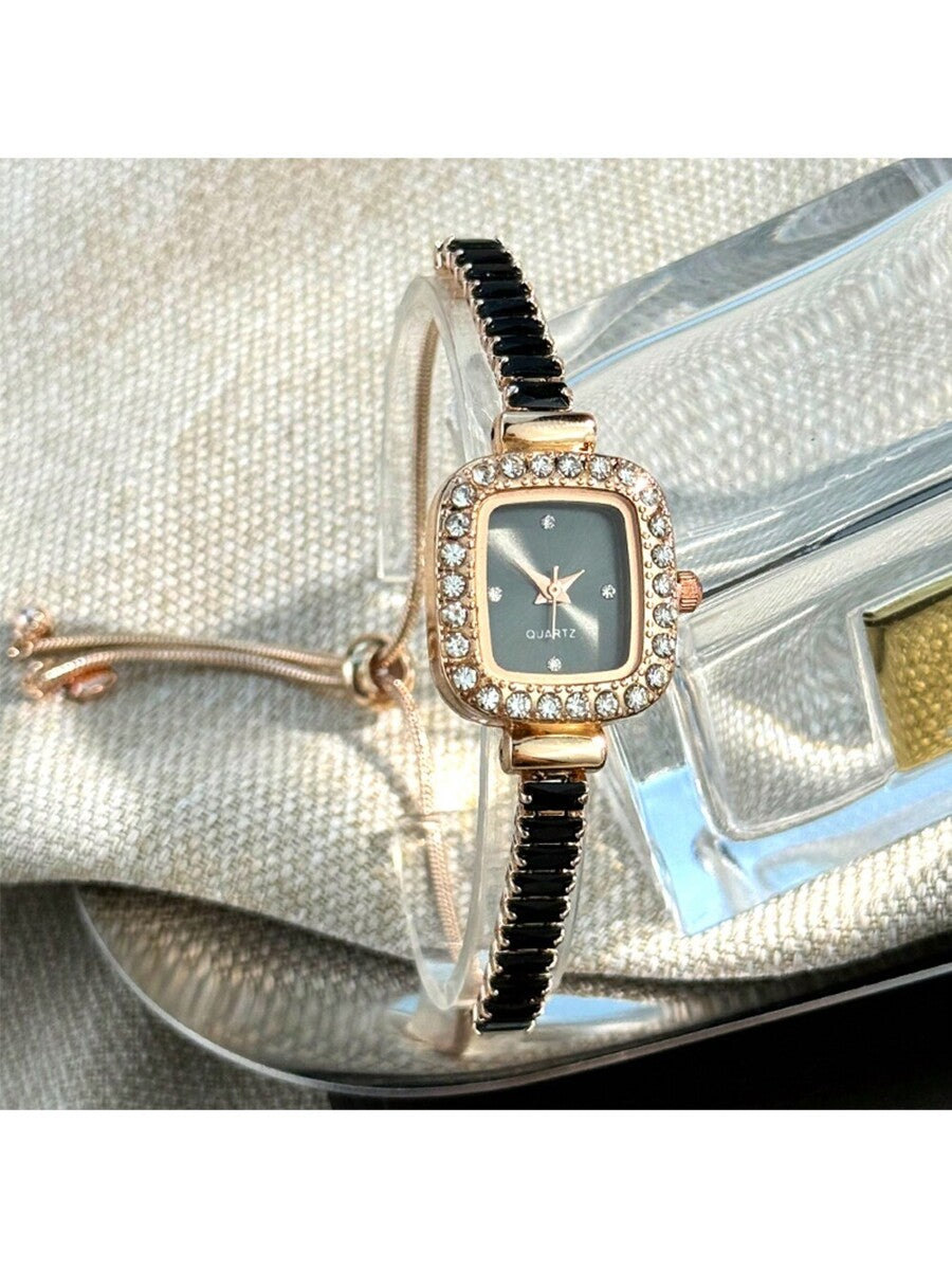 Bracelet Watch Women Adjustable Silver Tone Cubic Zirconia Rhinestone Alloy Case Elegant Quartz Minimalist Dial Gift for Daily Wear & Special Occasions 180+ Characters