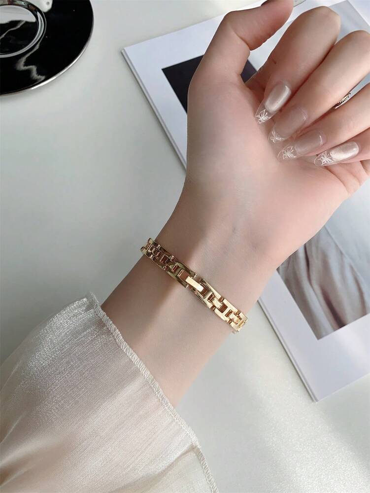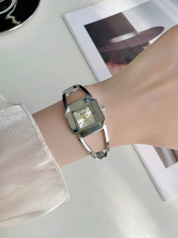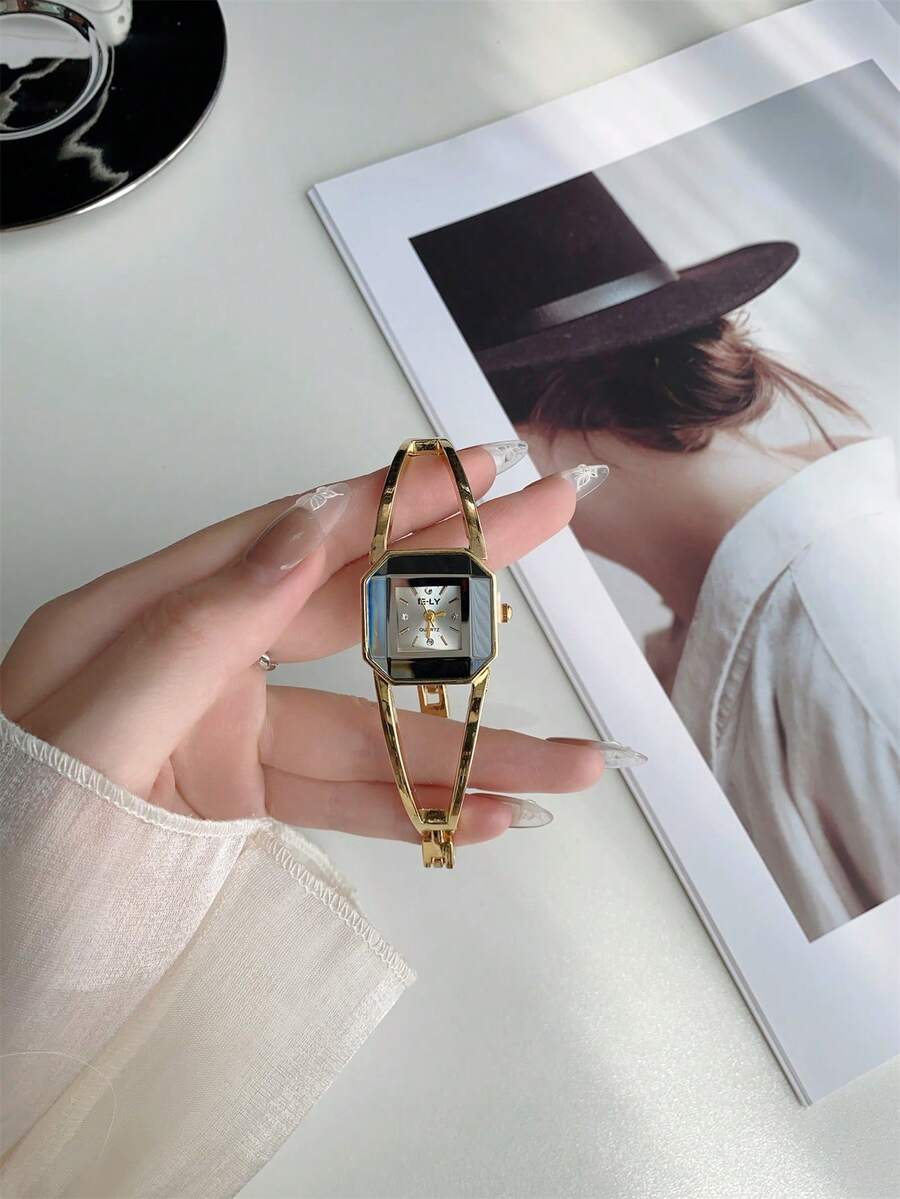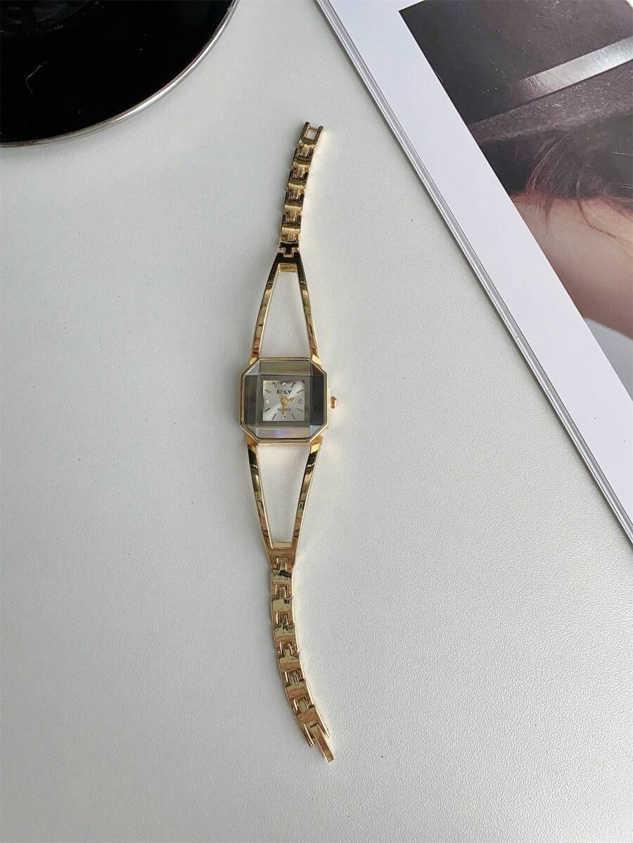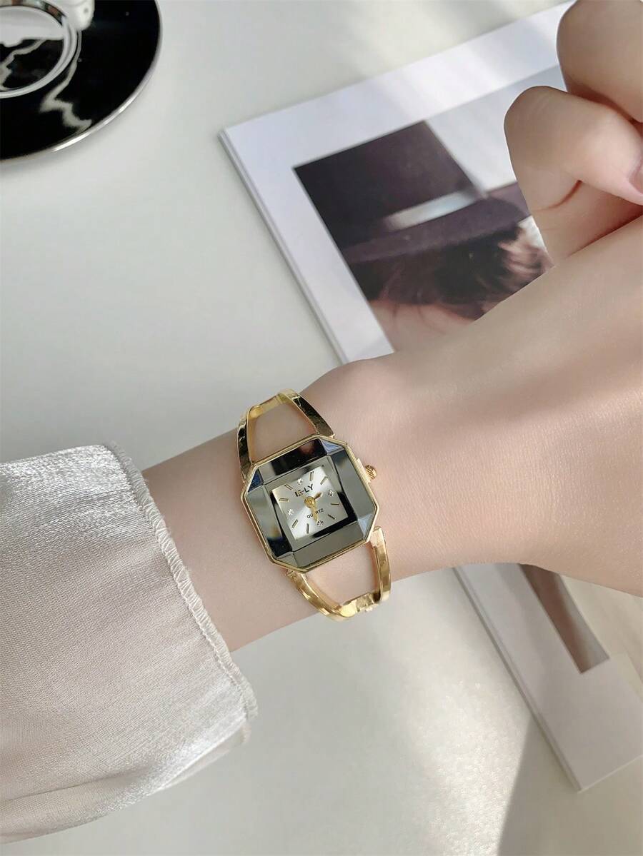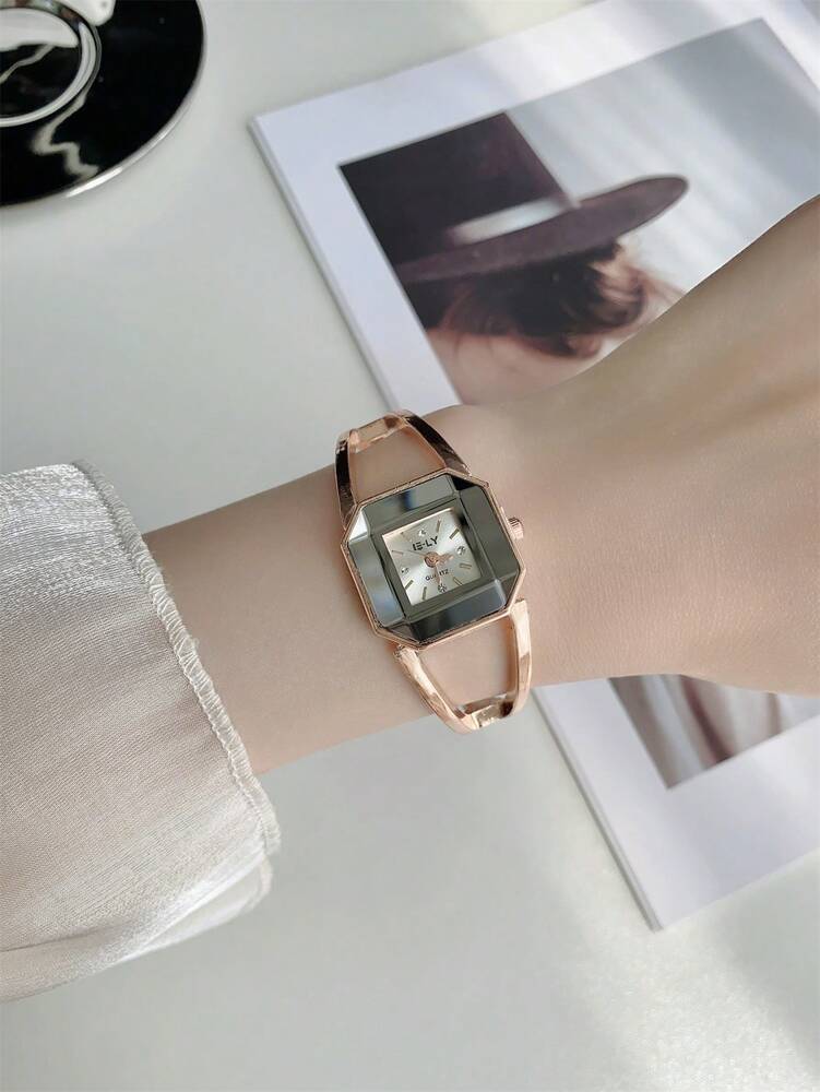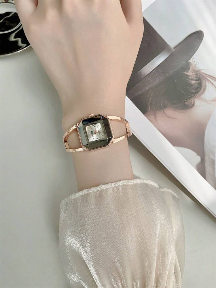 1pc Rose Gold Crystal Glass Dial Ladies Fashion Elegant Bracelet Watch Suitable for Daily Decoration