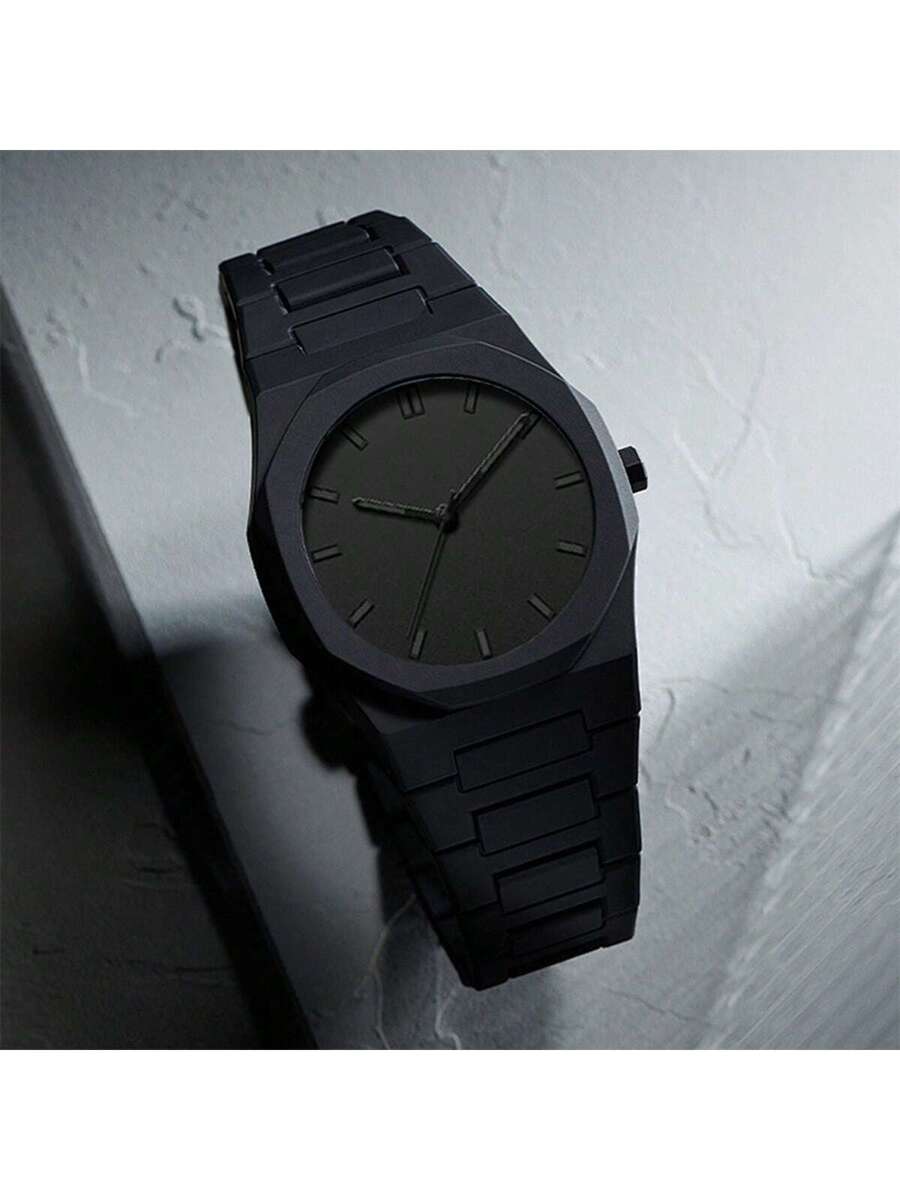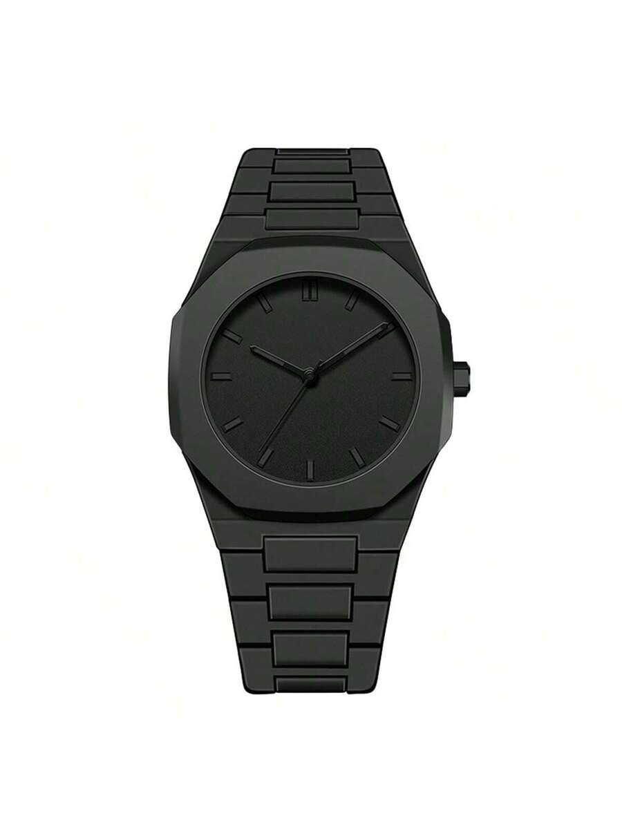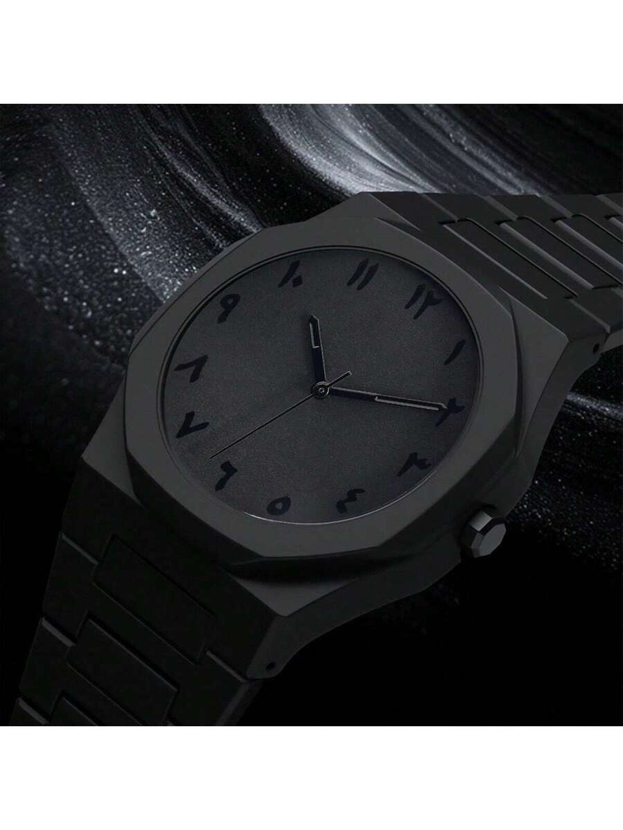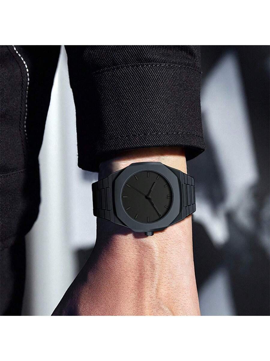 1 Piece Men's And Women's Black Rubber Strap Sporty, Casual, Creative Design, Adjustable Strap, Studded Round Dial Watch