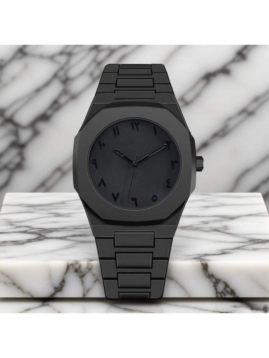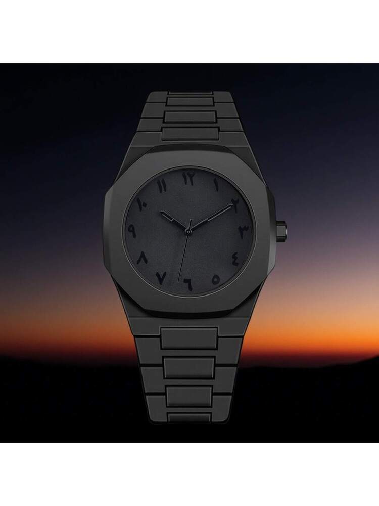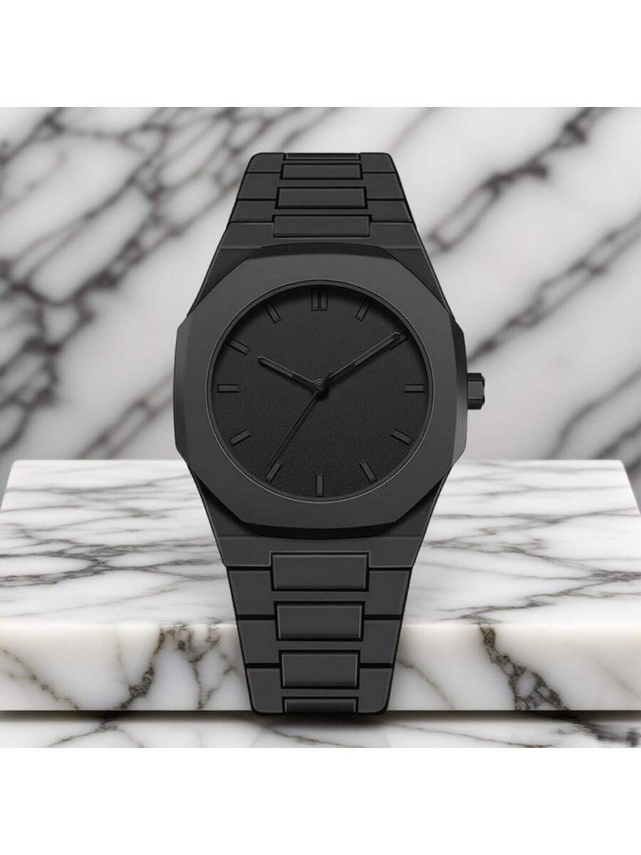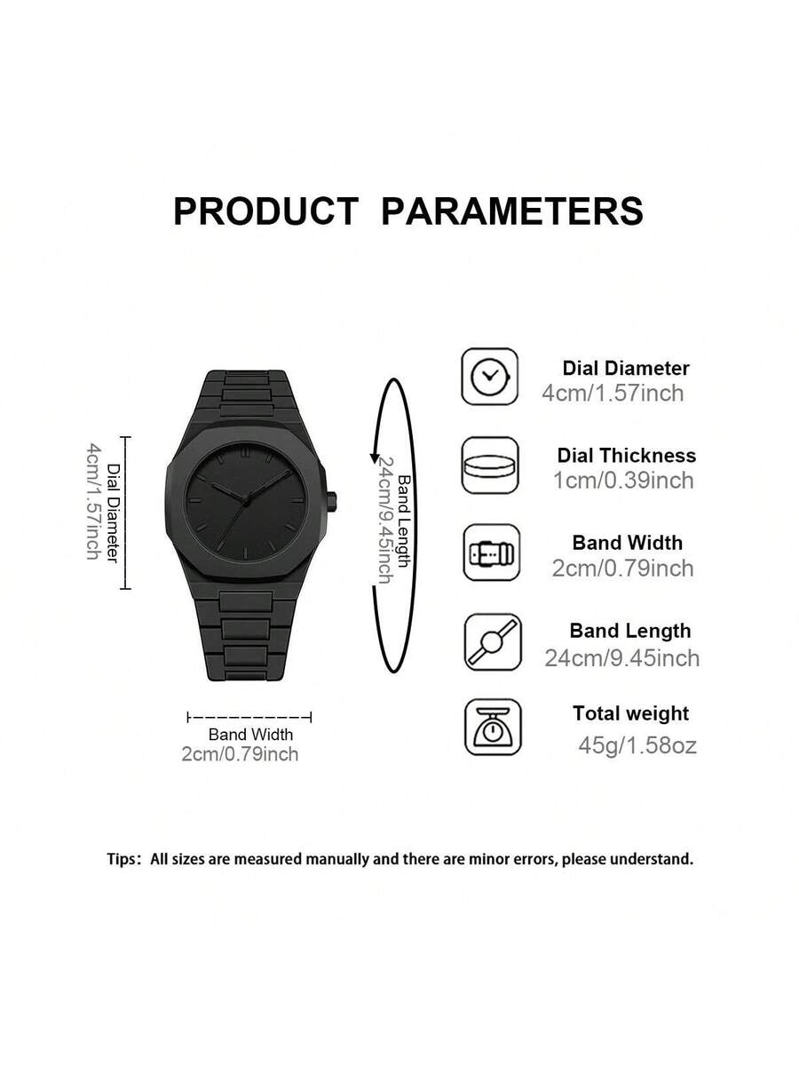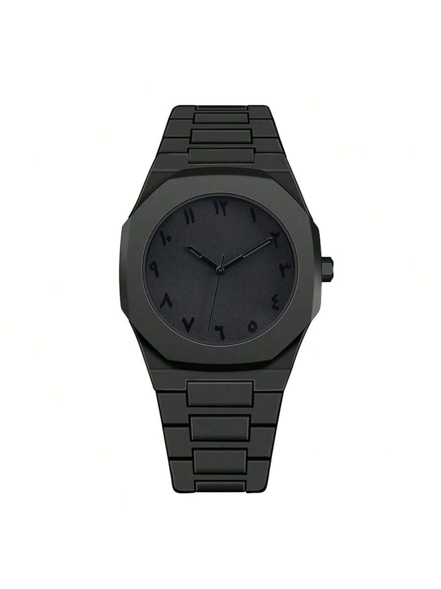 1 Piece Men's And Women's Black Rubber Strap Sporty, Casual, Creative Design, Adjustable Strap, Studded Round Dial Watch