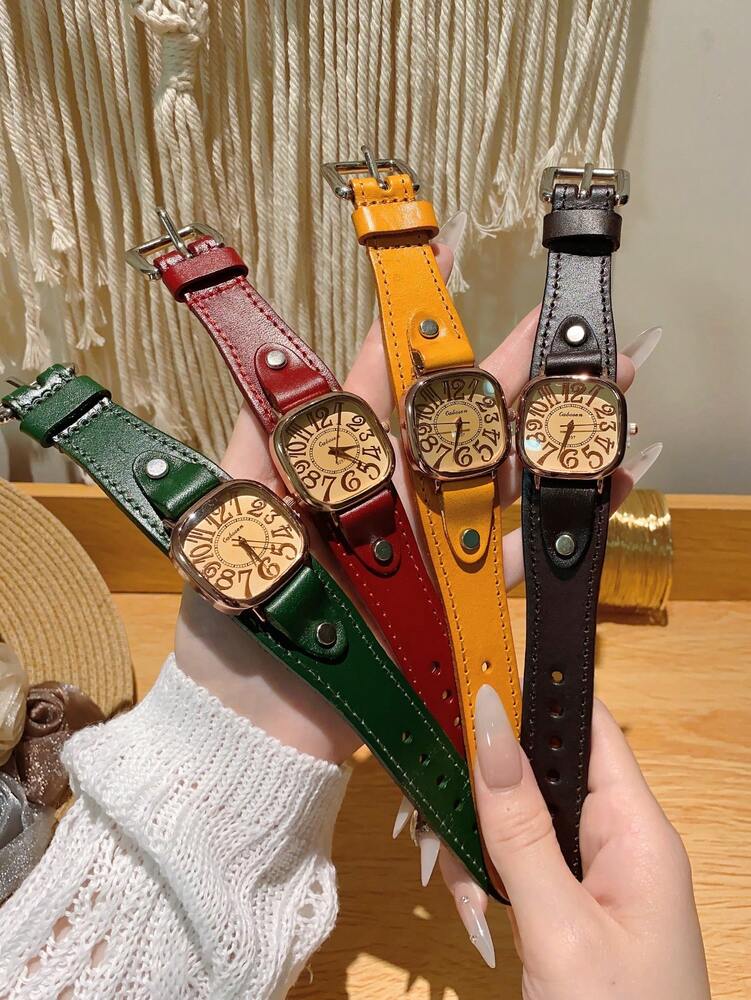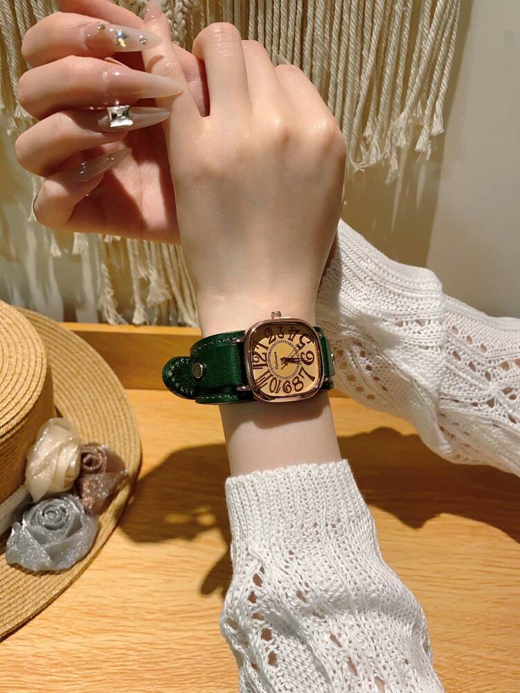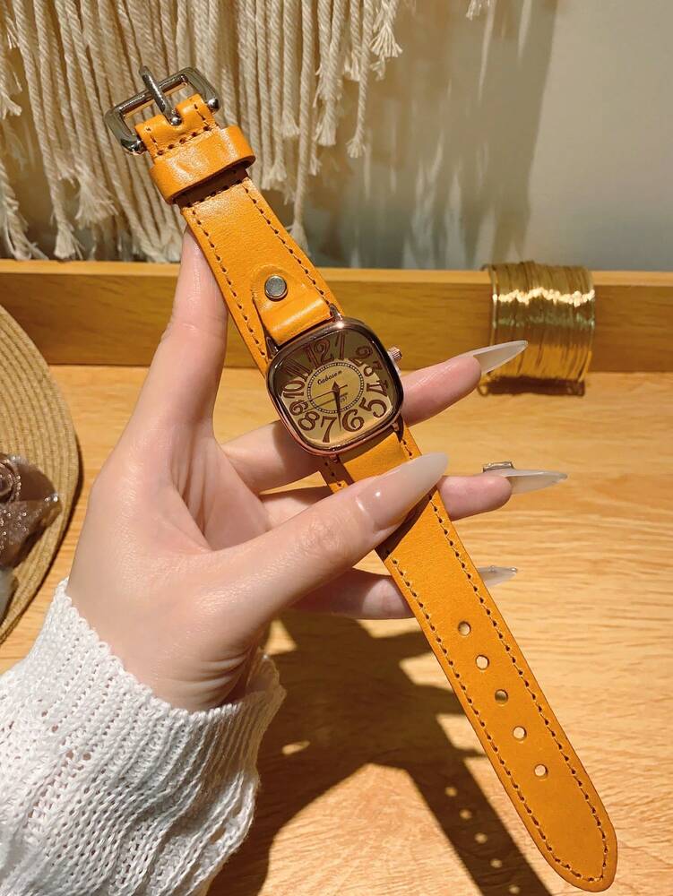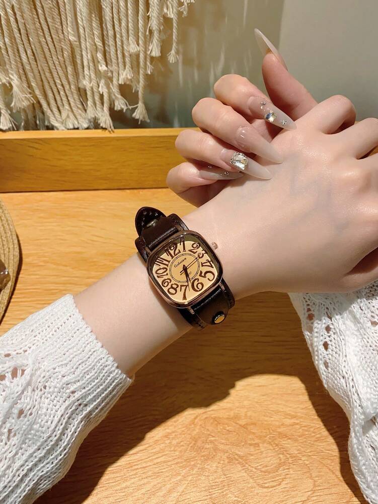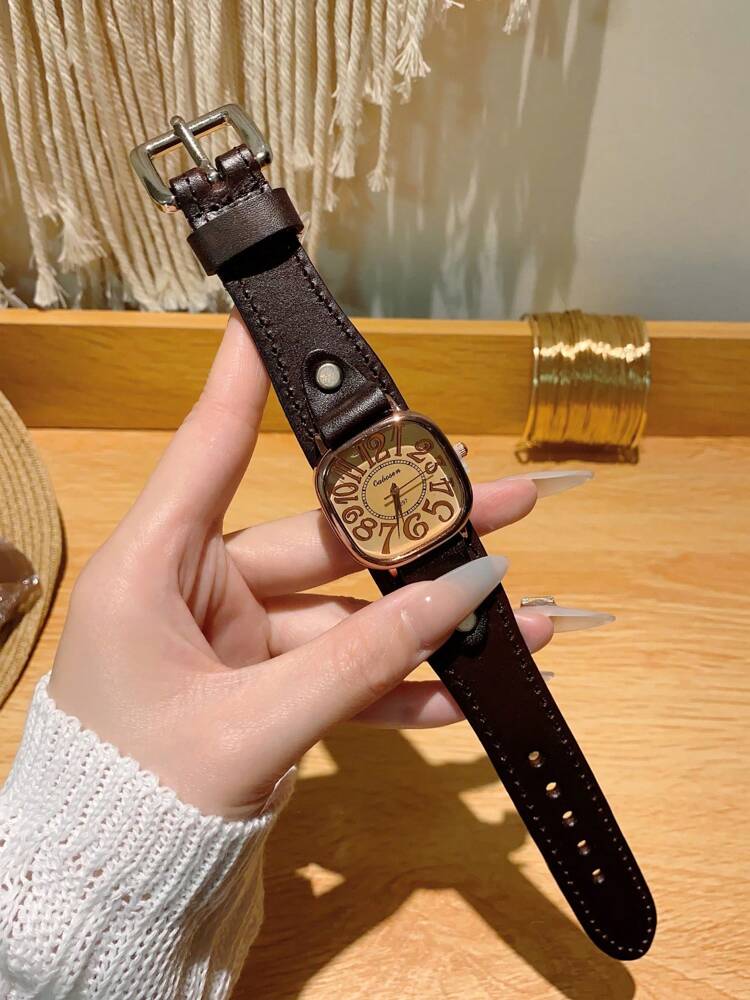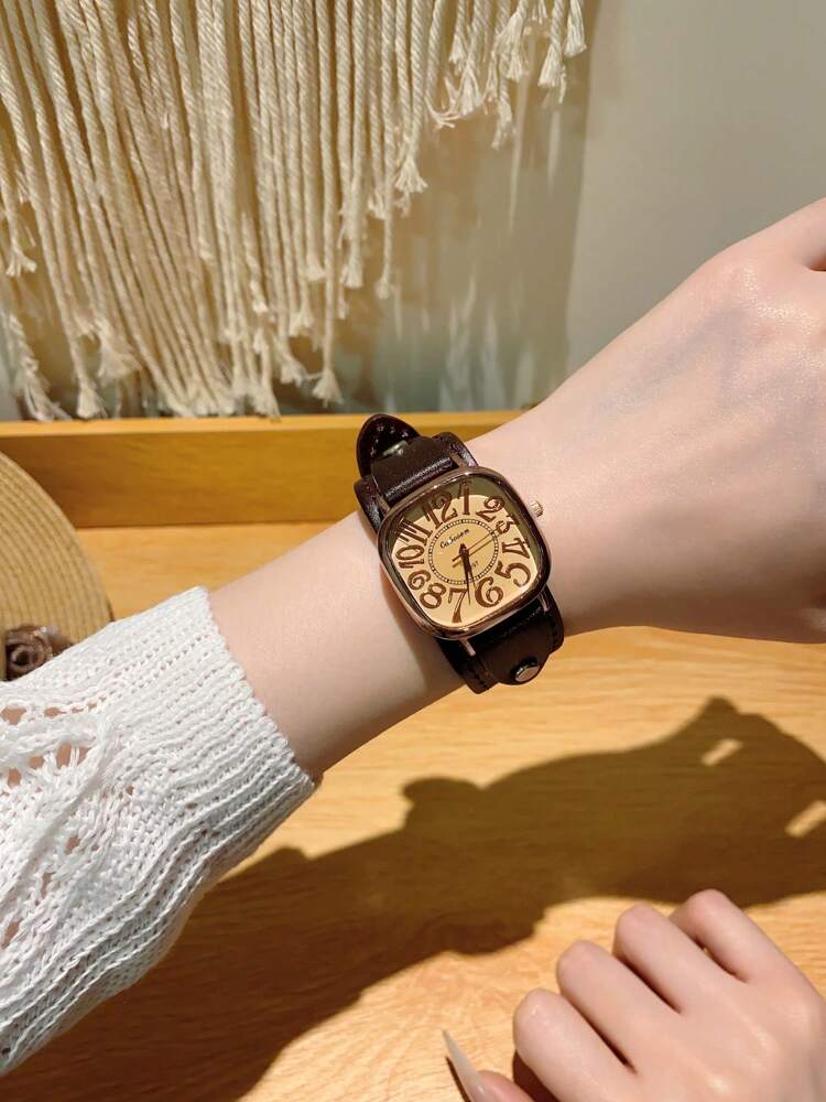 1pc Women’s Vintage Numerals Dial Quartz Watch With Simple & Fashionable Strap