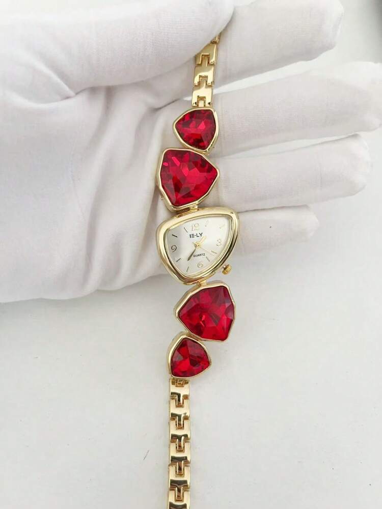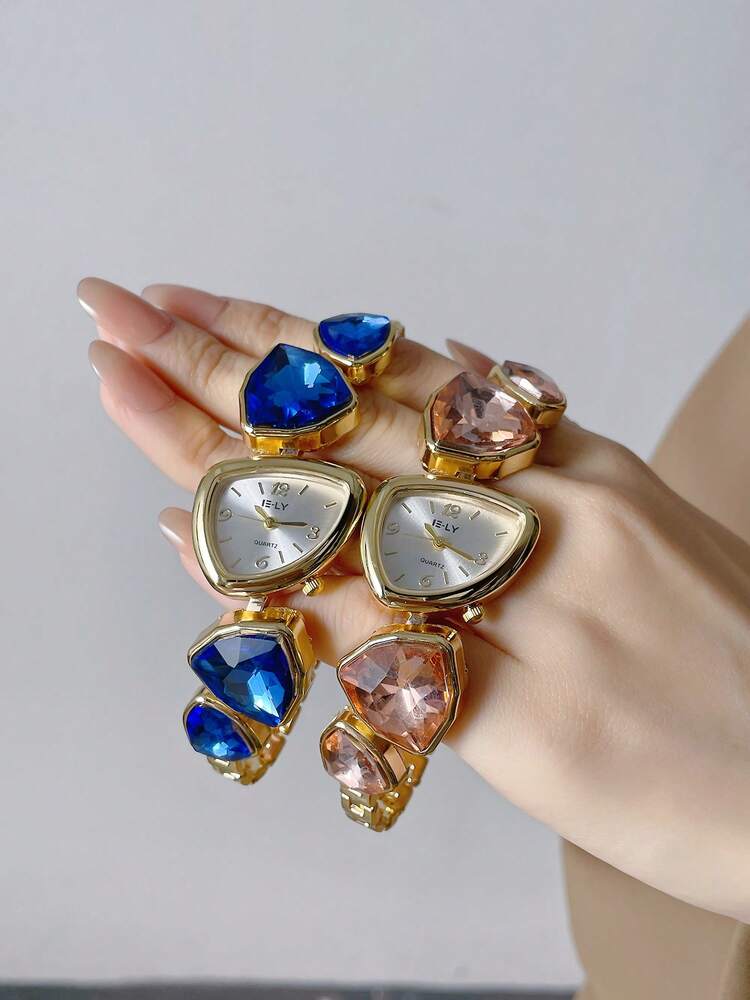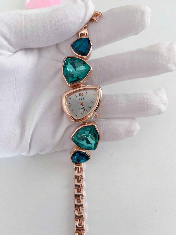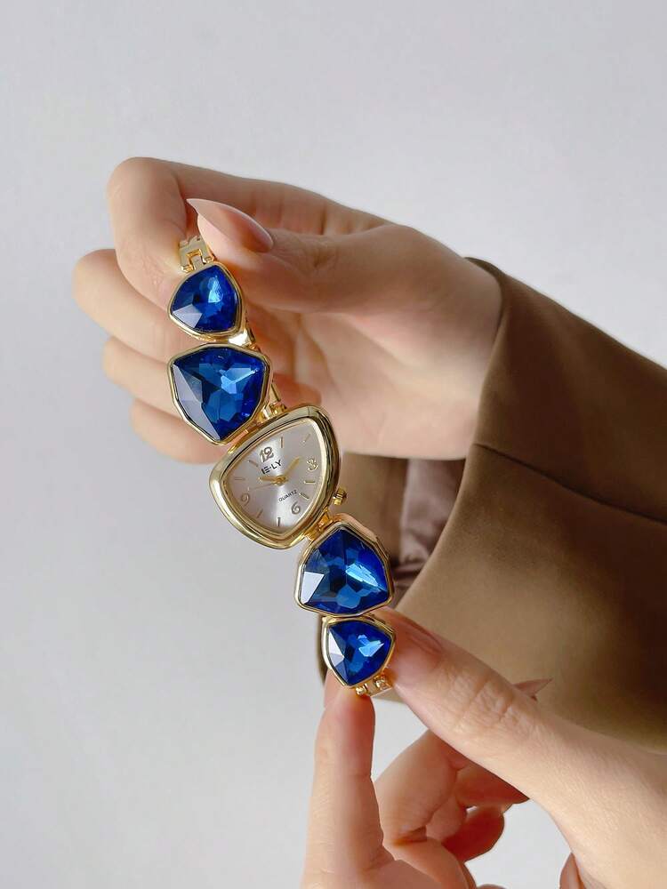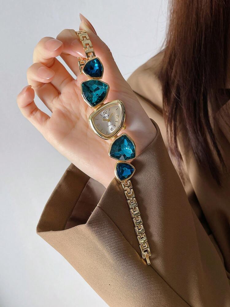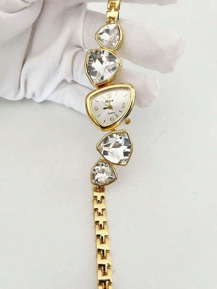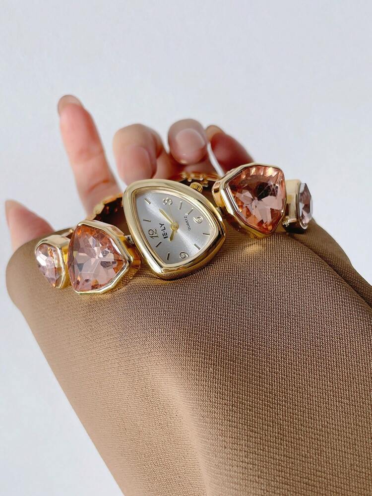 1pc New Casual Fashion Ladies' Bracelet Watch Unique Design Dial Decorated With Crystals, Rhinestone Embellished Watchband