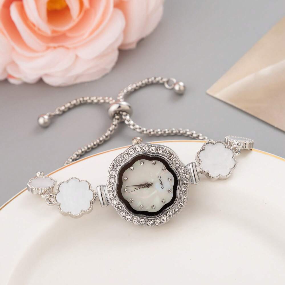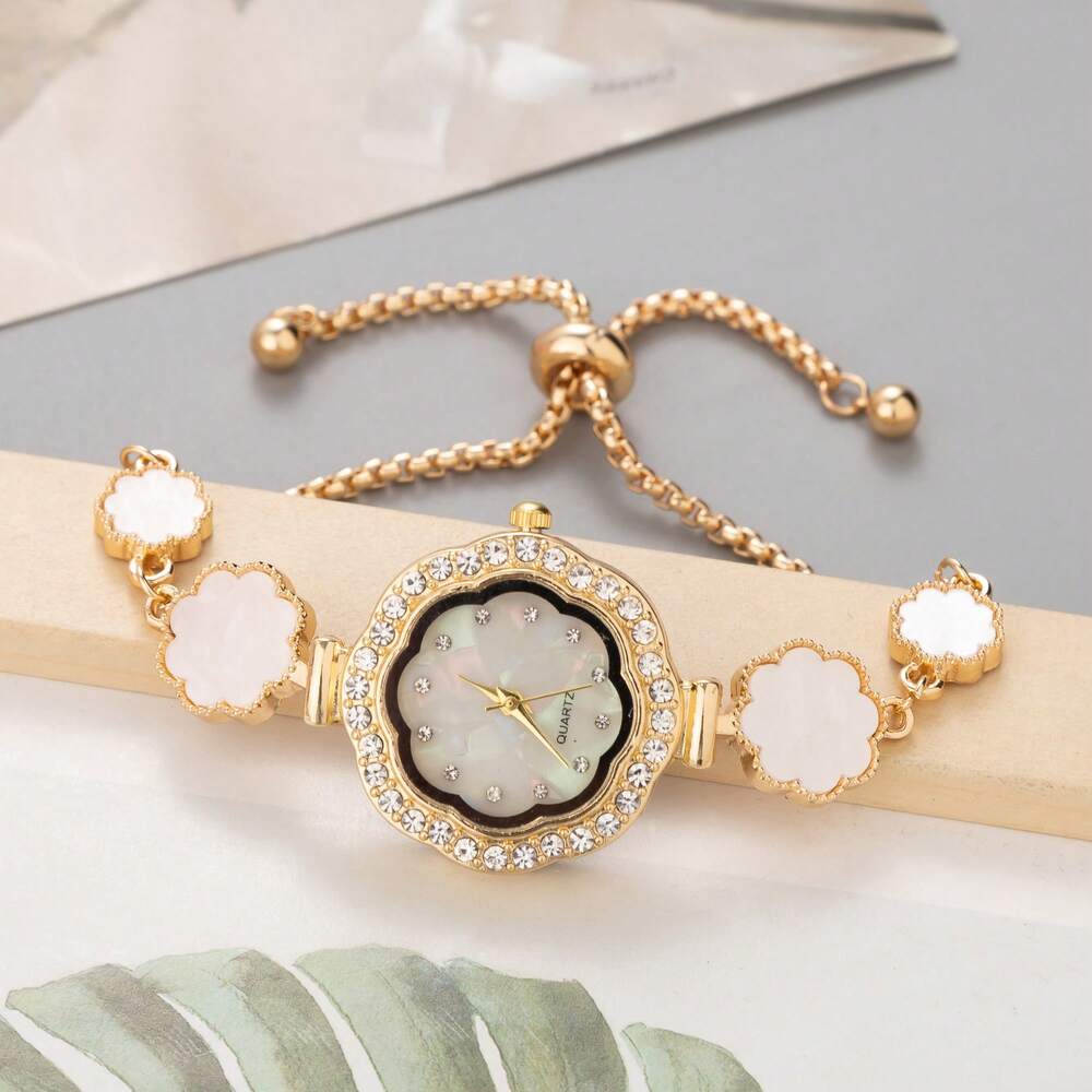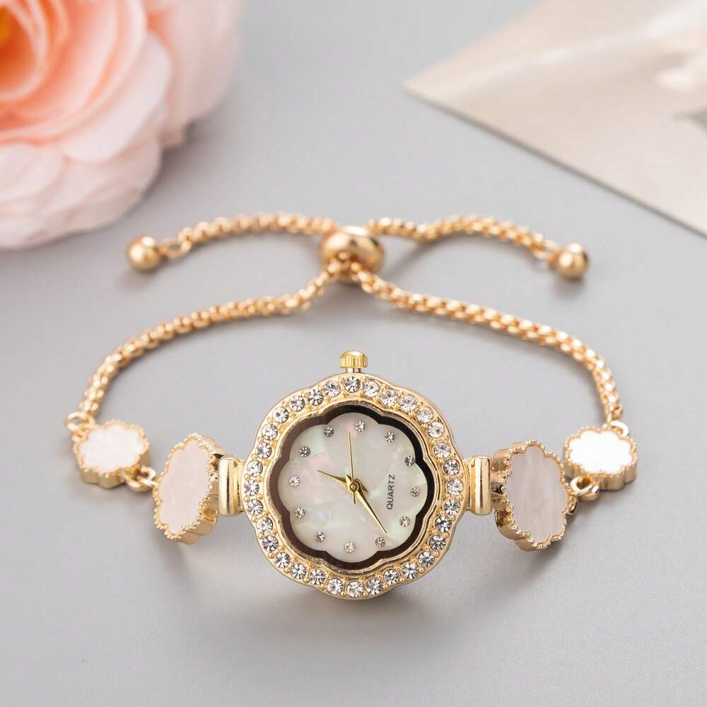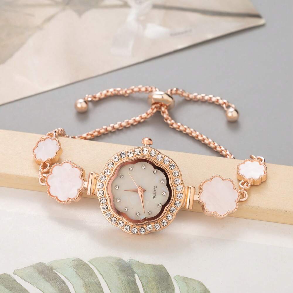 New Arrival Casual Flower Design Women's Wristwatch, With Cute Small Dial, Crystal Decorated Floral Strap, Alloy Quartz Watch