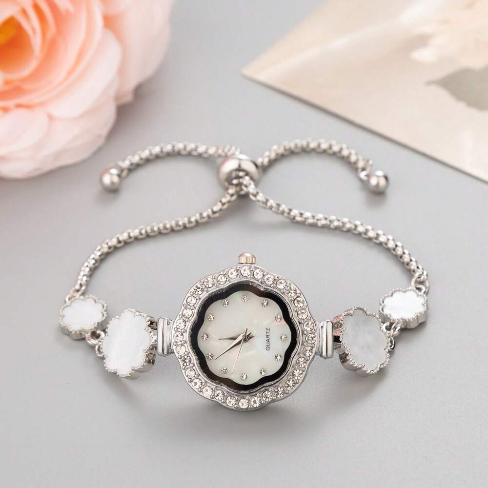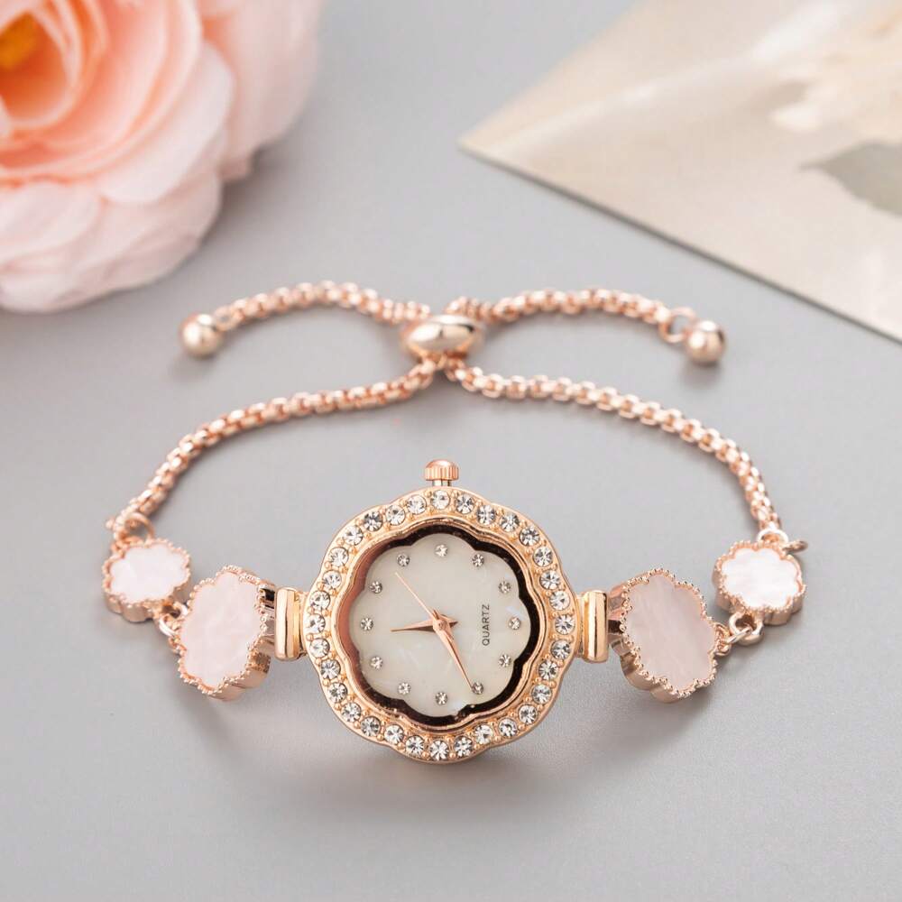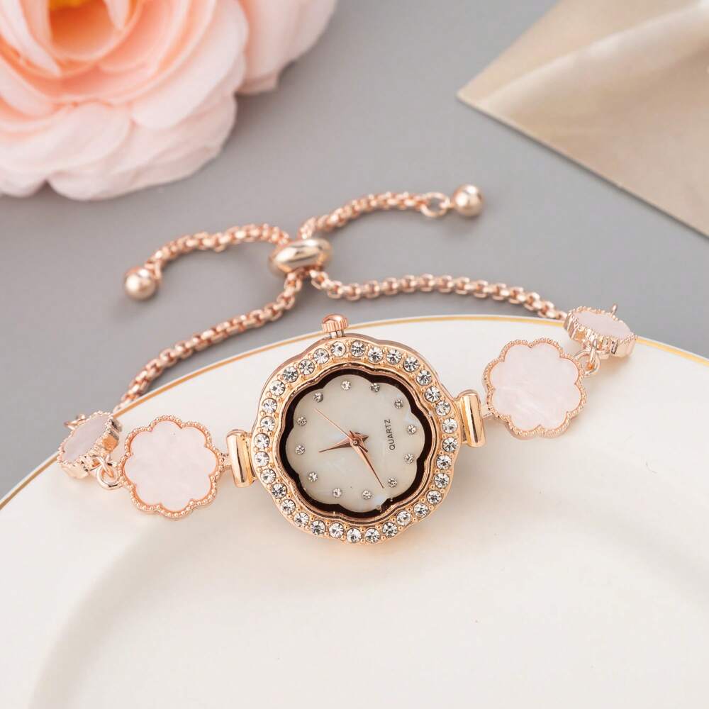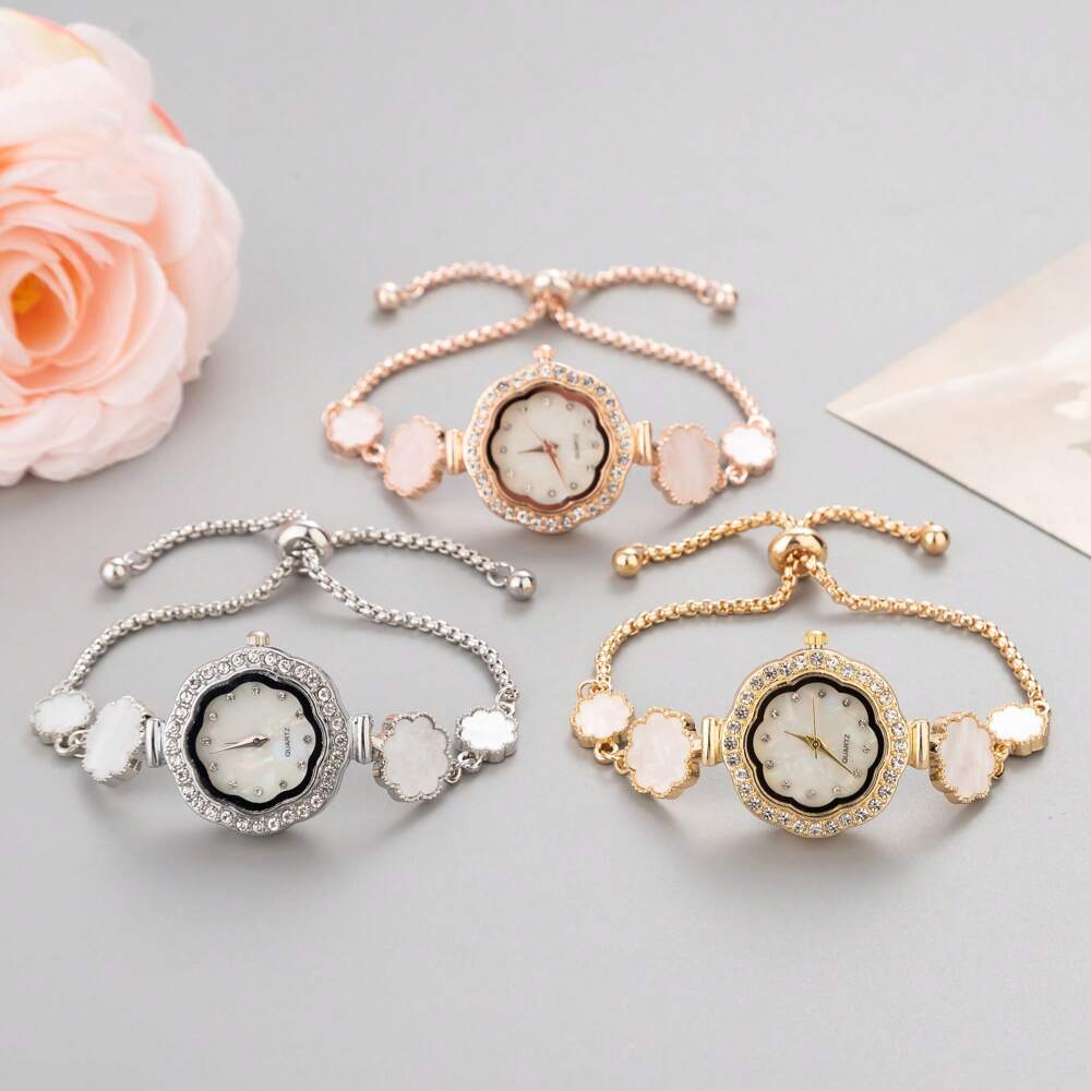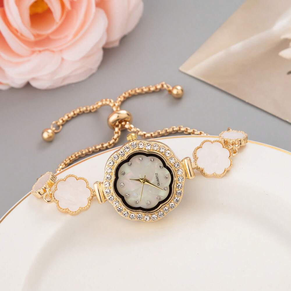 New Arrival Casual Flower Design Women's Wristwatch, With Cute Small Dial, Crystal Decorated Floral Strap, Alloy Quartz Watch